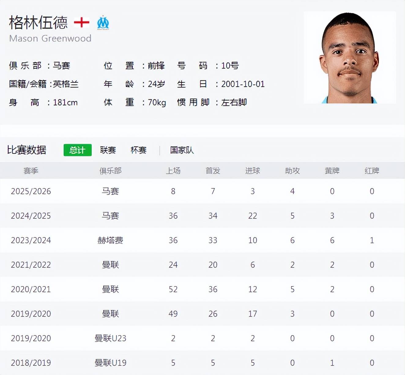 上个赛季,格林伍德在马赛的表现可圈可点,参加了36场比赛,贡献了22个进球和5次助攻,成为了球队内最具价值的球员,身价达到4000万欧元。在新赛季开始后,他的状态依然火热,过去8场比赛他参与了7个进球,成绩为4个进球和3次助攻,充分展示了自己的进攻威胁。